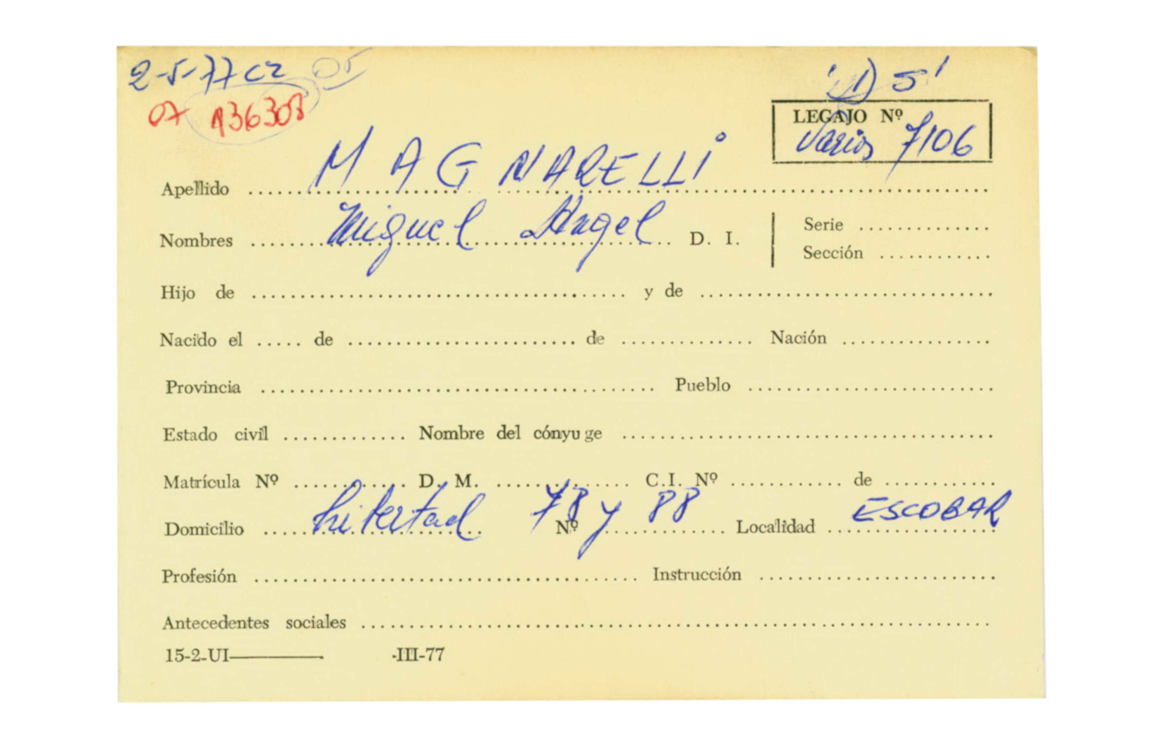 Miguel Ángel Magnarelli y Tilo Wenner, secuestrados y desparecidos en Escobar en 1976, tienen ficha en el Archivo de la DIPPBA, al igual que muchos otros detenides-desaparecides del país.