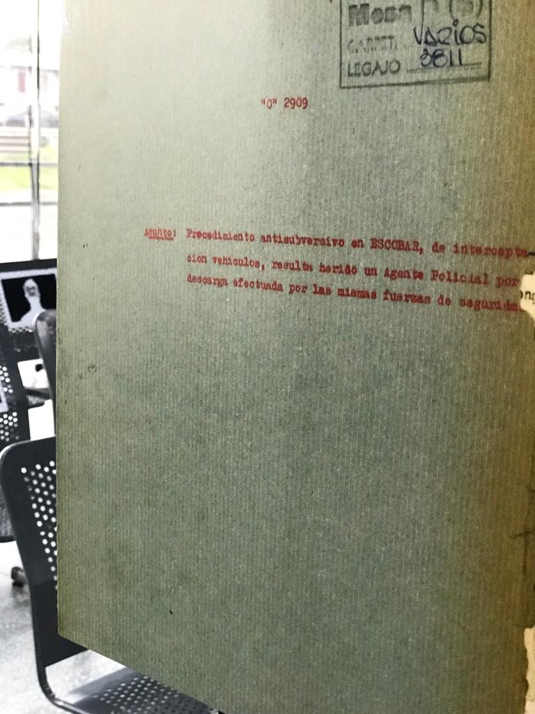 Carátula de legajo por procedimiento antisubversivo en Escobar. CPM- Fondo DIPPBA- Div. Cen. AyF, Mesa DS, carpeta varios, legajo 3811. Año 1975.