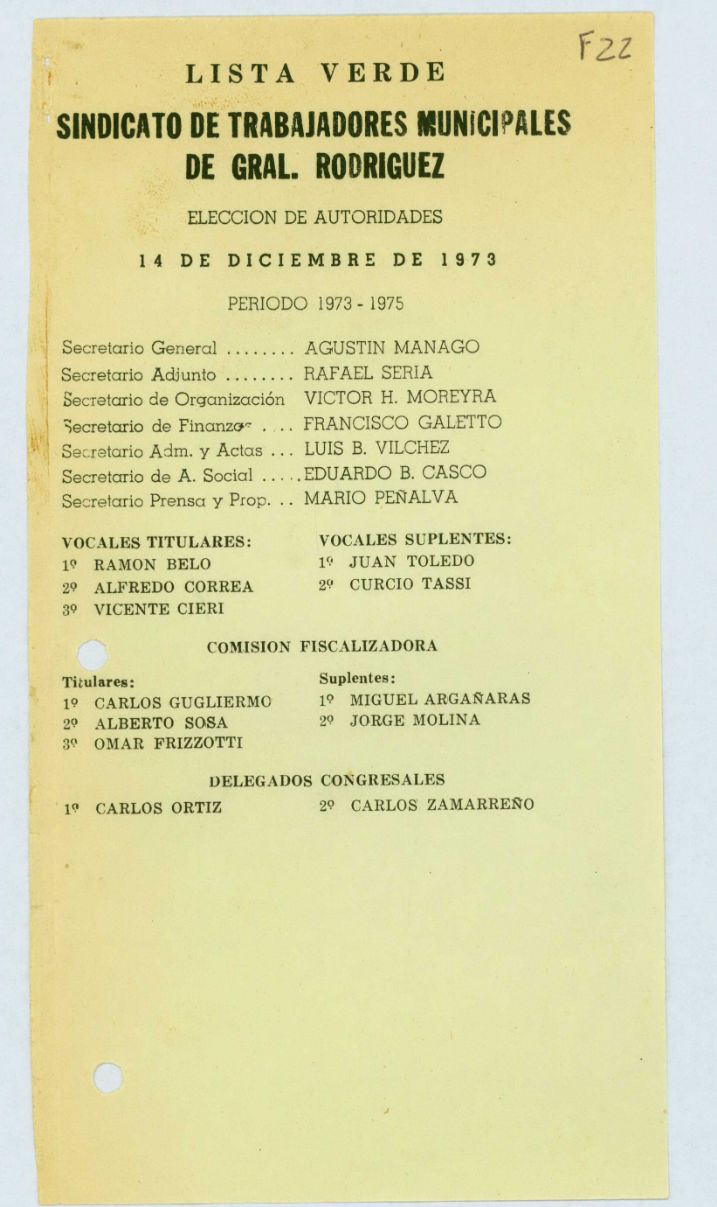 Carátula del legajo de Autoridades comunales de General Rodríguez. CPM – Fondo DIPPBA- Div. Cen. AyF, Mesa A, Factor Político , Carpeta 13, Legajo 51.
