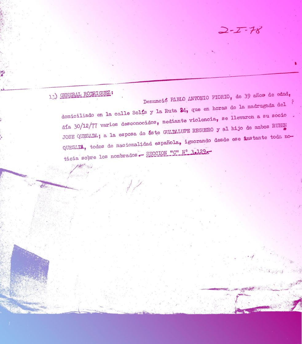 María Guadalupe del Reguero Sánchez y José Quesada son algunos de les desaparecides de General Rodríguez que tienen ficha en el archivo de la DIPPBA.