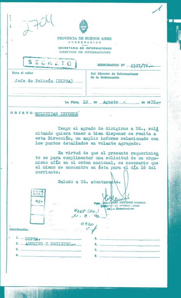 Solicitudes, memos, informes, fotografías, denuncias, fueron parte de la burocracia de la inteligencia policial que también fue parte del engranaje del terrorismo de estado durante la última dictadura militar.