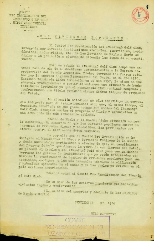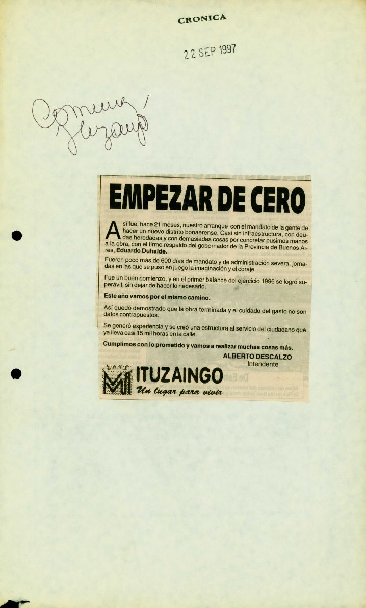 Las carátulas de la Mesa A, factor comunal, reflejan el nacimiento del partido de Ituzaingó en la década del 90.