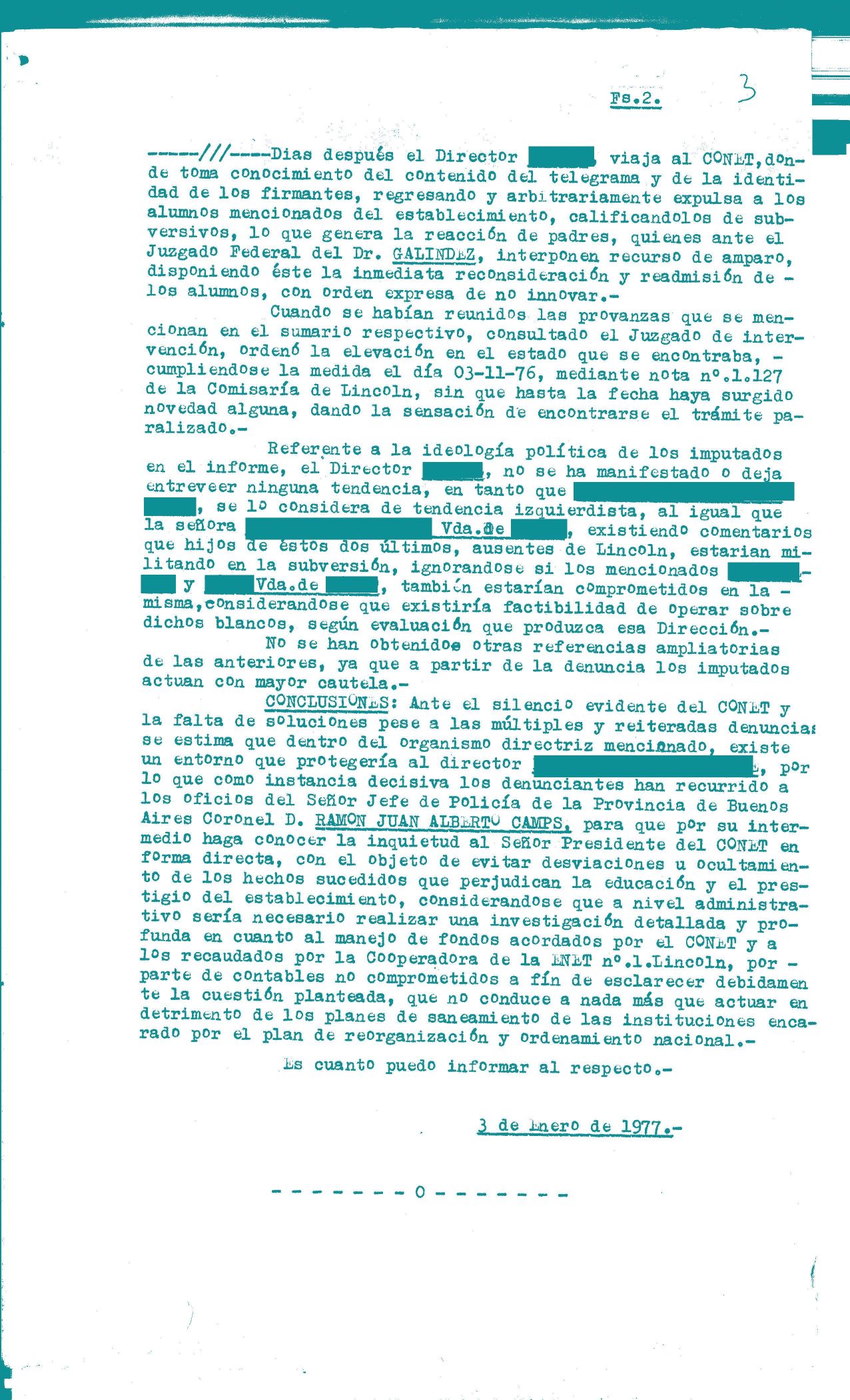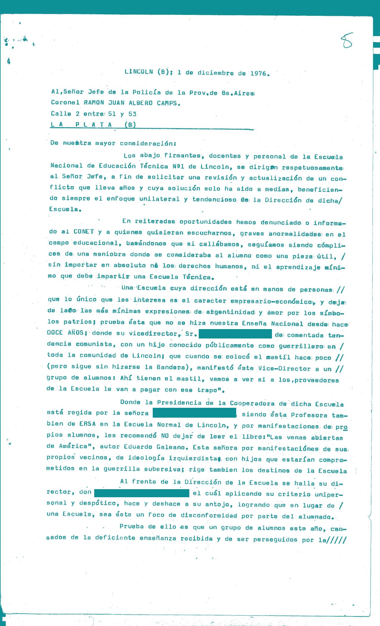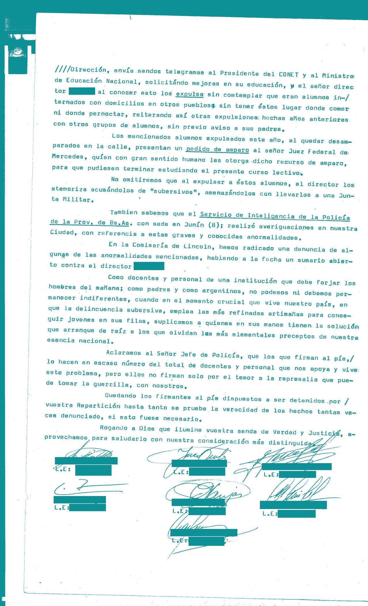 La escuela no escapó a la dinámica represiva que las Fuerzas Armadas instalaron en nuestro país entre 1976 y 1983. Por ser un espacio de producción de conocimientos y circulación de saberes, era considerada un ámbito de potencial amenaza y, al mismo tiempo, un dispositivo de disciplinamiento social que debía ser observado y vigilado.