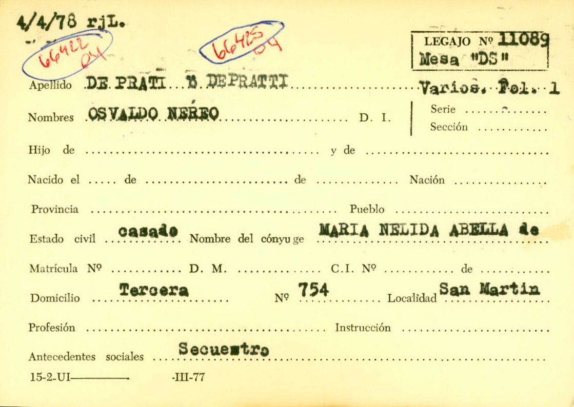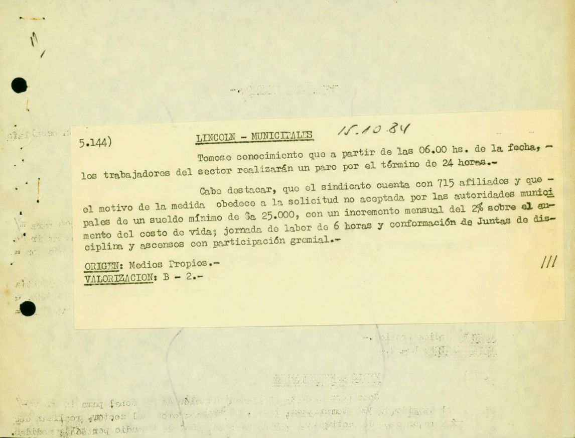 Cinco de los ocho desaparecidos de Lincoln tienen ficha en el Archivo de la DIPPBA, que remite a sus respectivos legajos. En algunos casos, los legajos son Solicitudes de paradero, que dan cuenta de la búsqueda de los familiares que piden a las autoridades judiciales y/o del ejecutivo saber si sus seres queridos están detenidos. En otros, se trata de información recogida previamente por la Dirección de inteligencia y son reveladoras de la persecución que ya se ejercía sobre las víctimas.