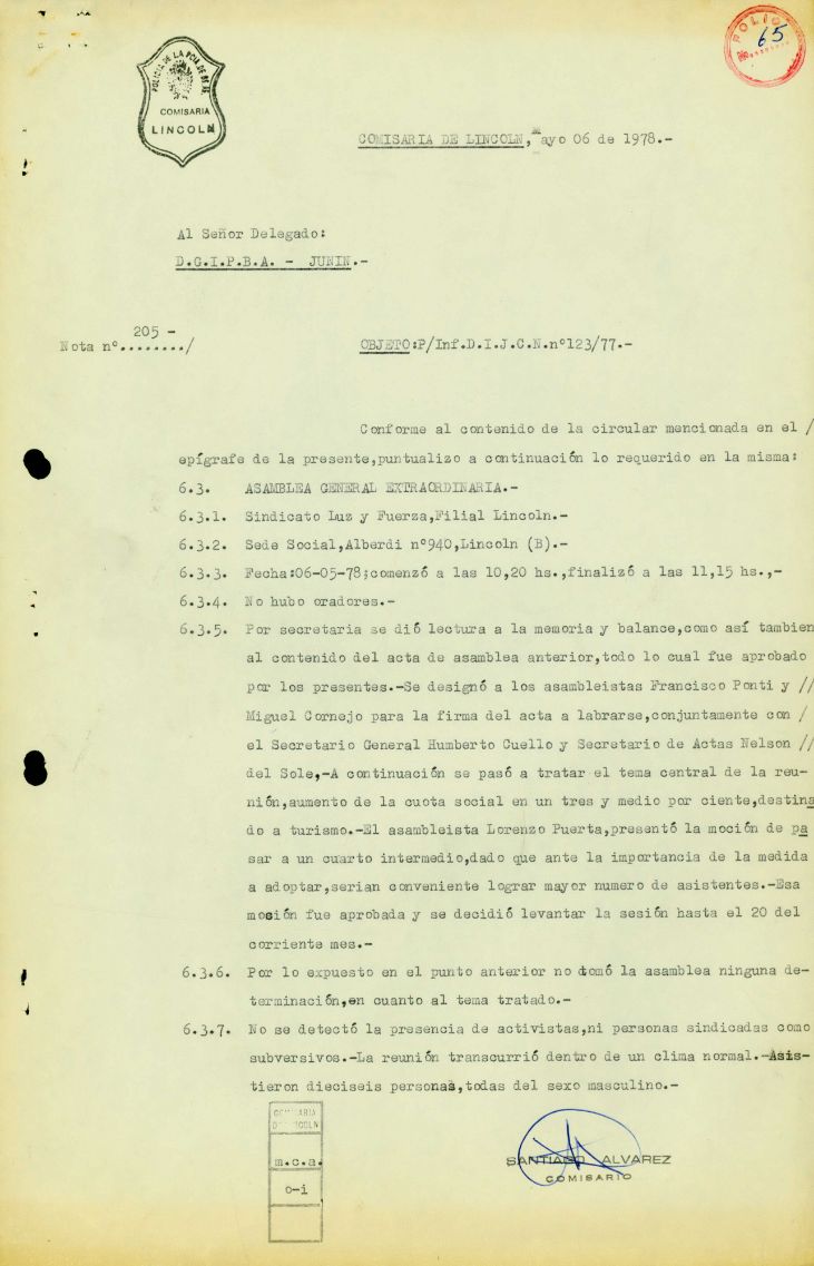 La mayor parte de la información que encontramos en el archivo era producida en las delegaciones. Éstas reunían la información a partir de “factores” (estudiantil, político, comunal, gremial, laboral, económico, religioso, social) y luego la remitían a la DIPPBA Central, que las clasificaba y archivaba en la División Central de Documentación Registro y Archivo.