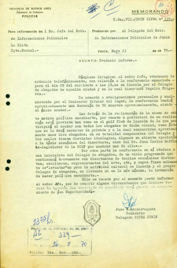 “El postulado parte de la base de saber quién es quién, es decir, tener registrado a los buenos para saber quiénes son cuando dejan de serlo”. Esta frase extraída de un legajo de la Mesa Doctrina, da una idea de la persecución, espionaje y registro de la DIPPBA sobre las actividades de las y los ciudadanos de la provincia de Buenos Aires a lo largo de casi 50 años. Solicitudes, memos, informes, allanamientos, fueron parte de la burocracia de la inteligencia policial que también supo formar parte del engranaje del terrorismo de estado durante la última dictadura militar.