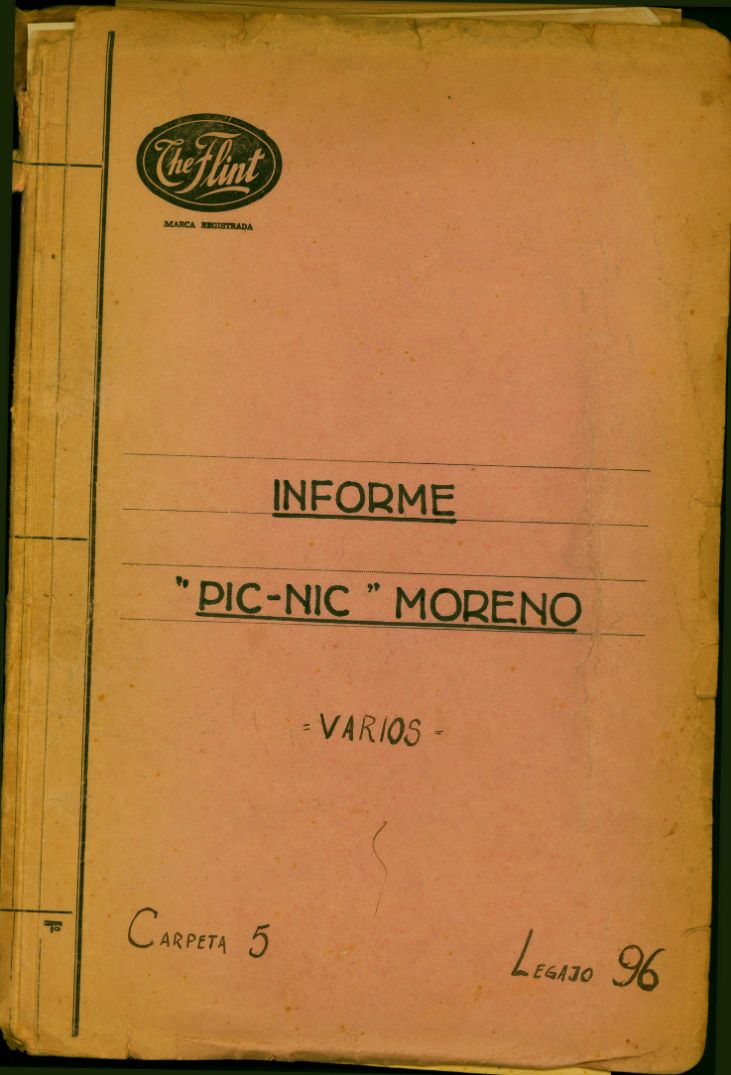 Carátula del legajo sobre Pic Nic del partido comunista en Moreno. CPM- Fondo DIPPBA- Div. Cen. AyF, Mesa C, carpeta 5, legajo 96. Año 1957.