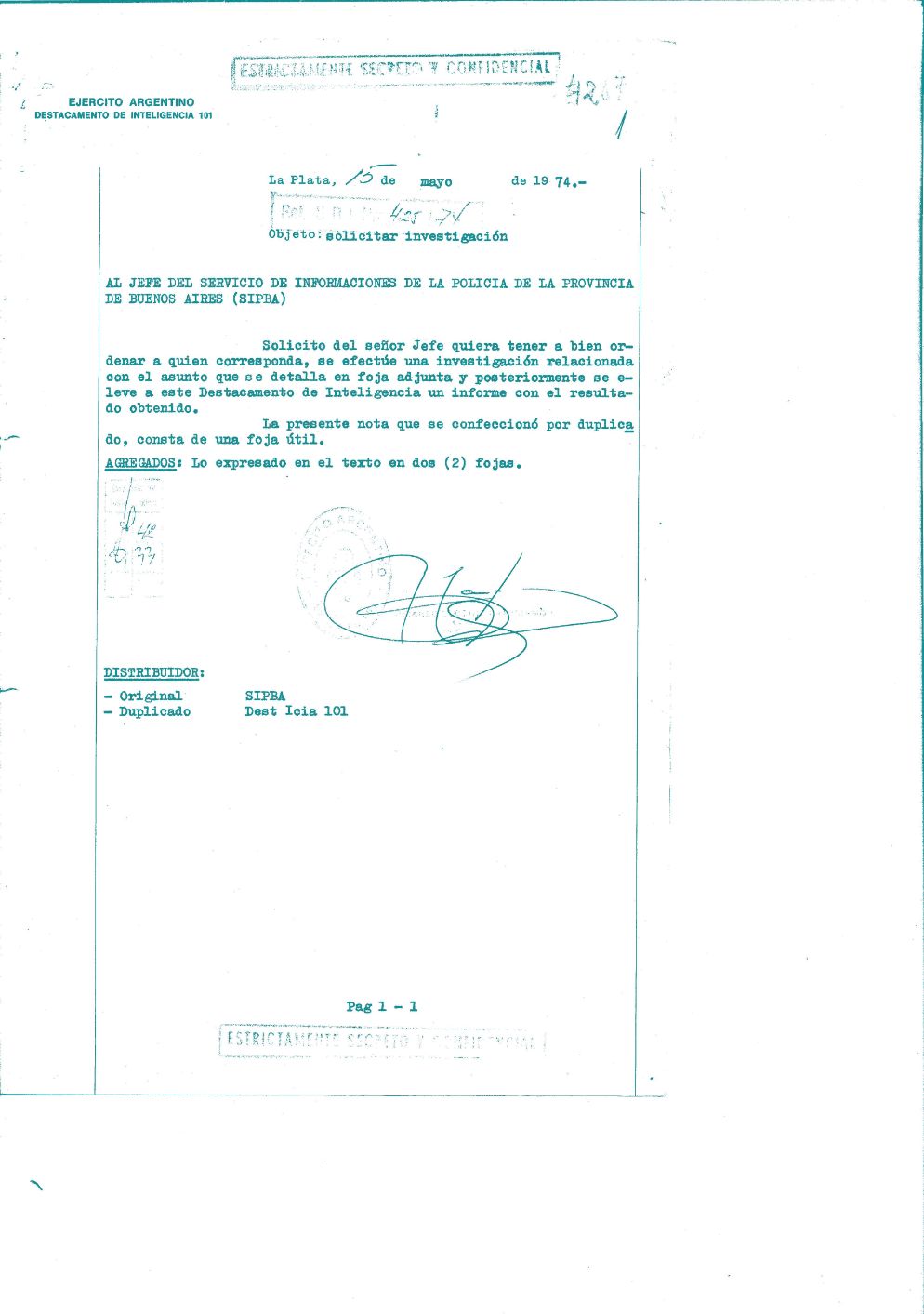 En algunos casos, los legajos a los que hacen referencia las fichas son Solicitudes de paradero, que dan cuenta de la búsqueda de los familiares que pedían a las autoridades judiciales y/o del ejecutivo saber si sus seres queridos estaban detenidos. En otros, se trata de información recogida previamente por la Dirección de inteligencia y son reveladoras de la persecución que ya se ejercía sobre las víctimas.
