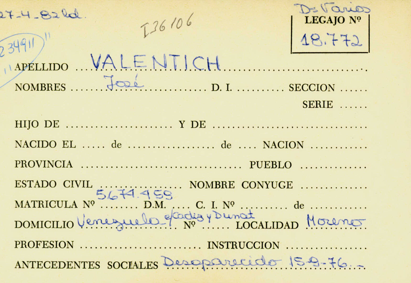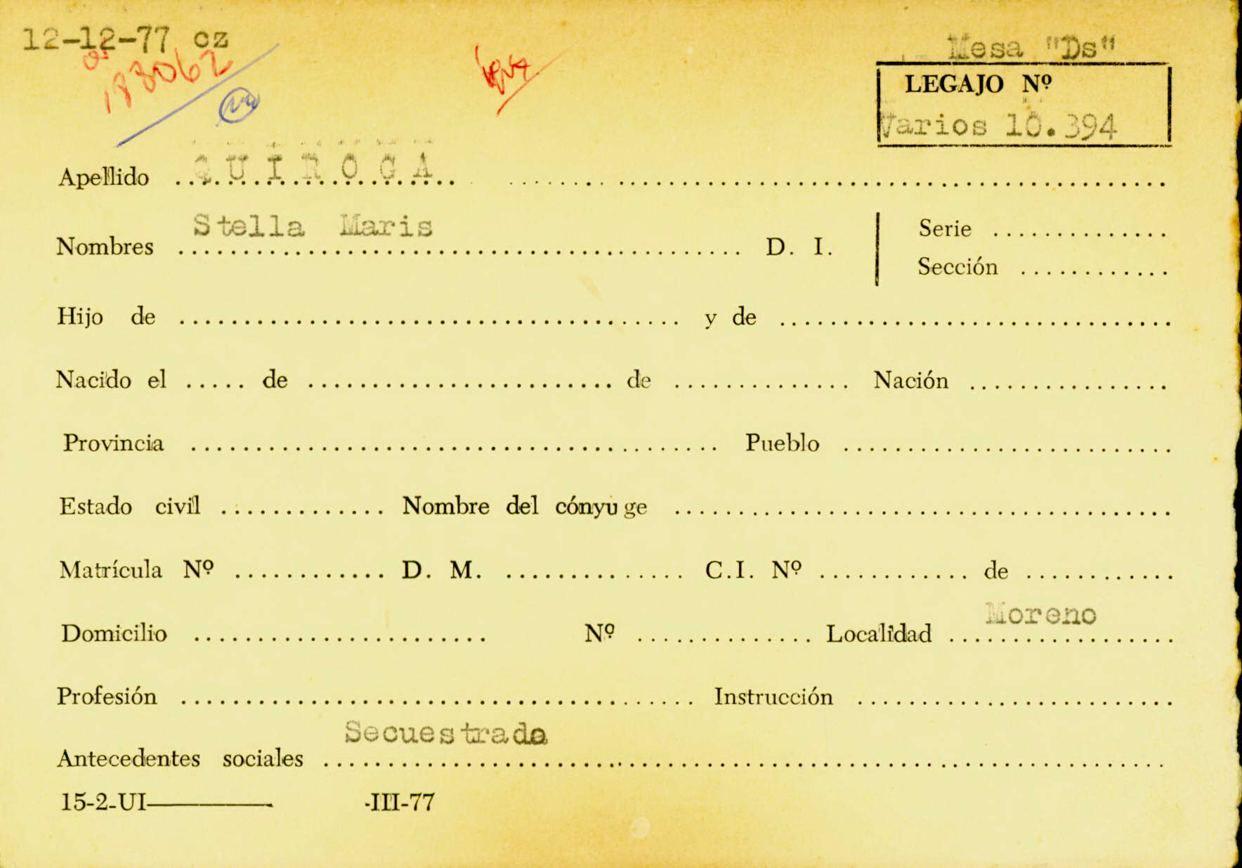 José Valentich, María Cristina Cournou y Stella Maris Quiroga, son algunos de les desaparecides de Moreno que tienen ficha en el archivo de la DIPPBA.