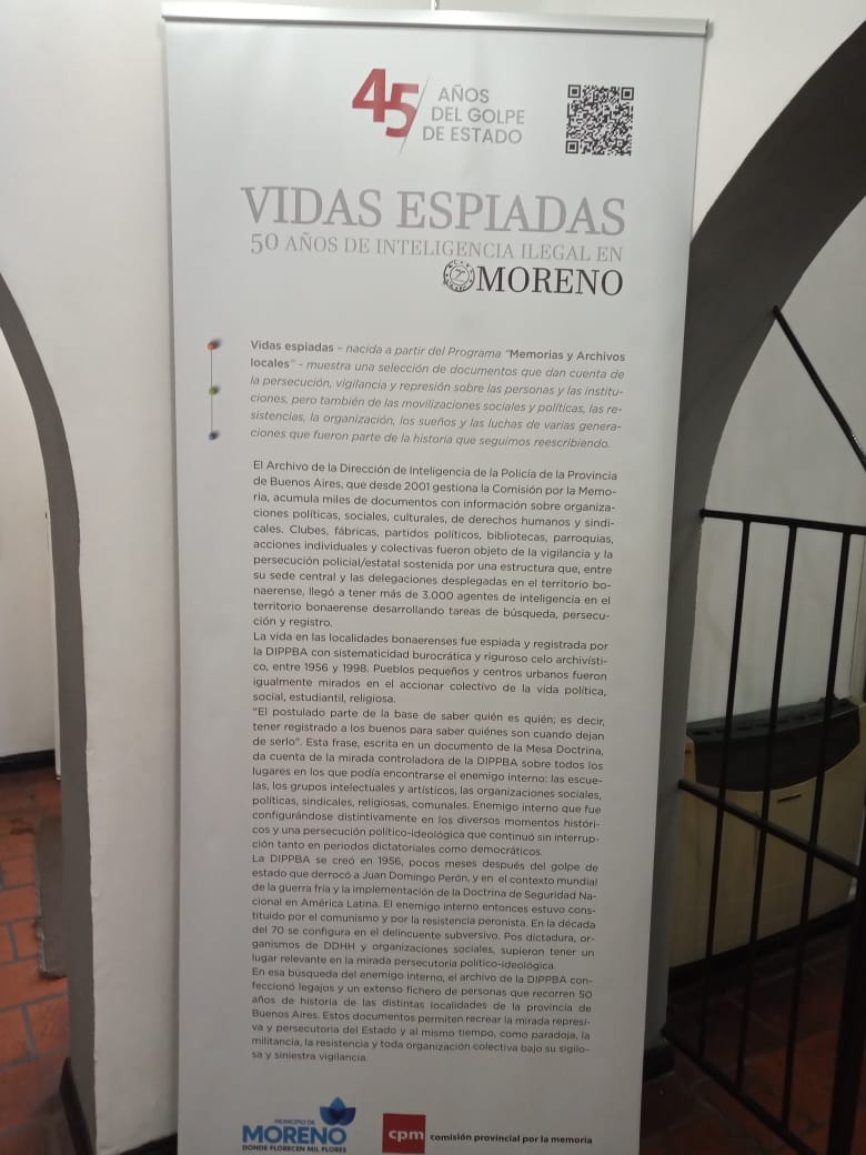 Como parte del trabajo conjunto entre la CPM y los municipios que participan del Programa, se inauguró en marzo de 2021, la muestra documental “Vidas espiadas, 50 años de inteligencia ilegal”, con documentos del archivo de la Dirección de Inteligencia de la Policía de la Provincia de Buenos Aires (DIPPBA).