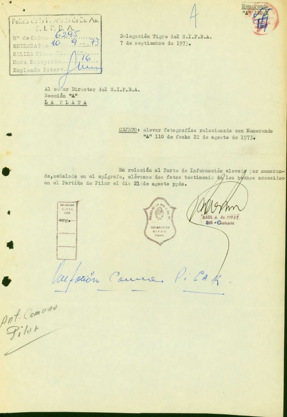 “La masacre de Fátima” -sucedida el 20 de agosto de 1976, cuando 20 hombres y 10 mujeres secuestrados por fuerzas militares y policiales dependientes del Cuerpo I del Ejército fueron fusilados, apilados y dinamitados en un camino vecinal cercano a la localidad de Fátima- está registrado en el archivo de la DIPPBA en la mesa Ds.