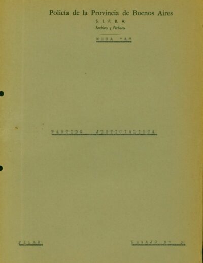 Carátula del Legajo del Partido justicialista. CPM- Fondo DIPPBA- Div. Cen. AyF, Mesa A, Partidos políticos por localidad, Legajo 3.