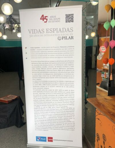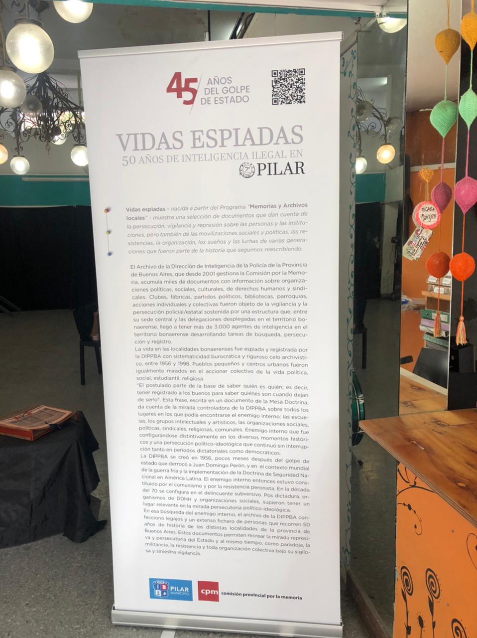 Como parte del trabajo conjunto entre la CPM y los municipios que participan del Programa, se inauguró en marzo de 2021, la muestra documental “Vidas espiadas, 50 años de inteligencia ilegal”, con documentos del archivo de la Dirección de Inteligencia de la Policía de la Provincia de Buenos Aires (DIPPBA).