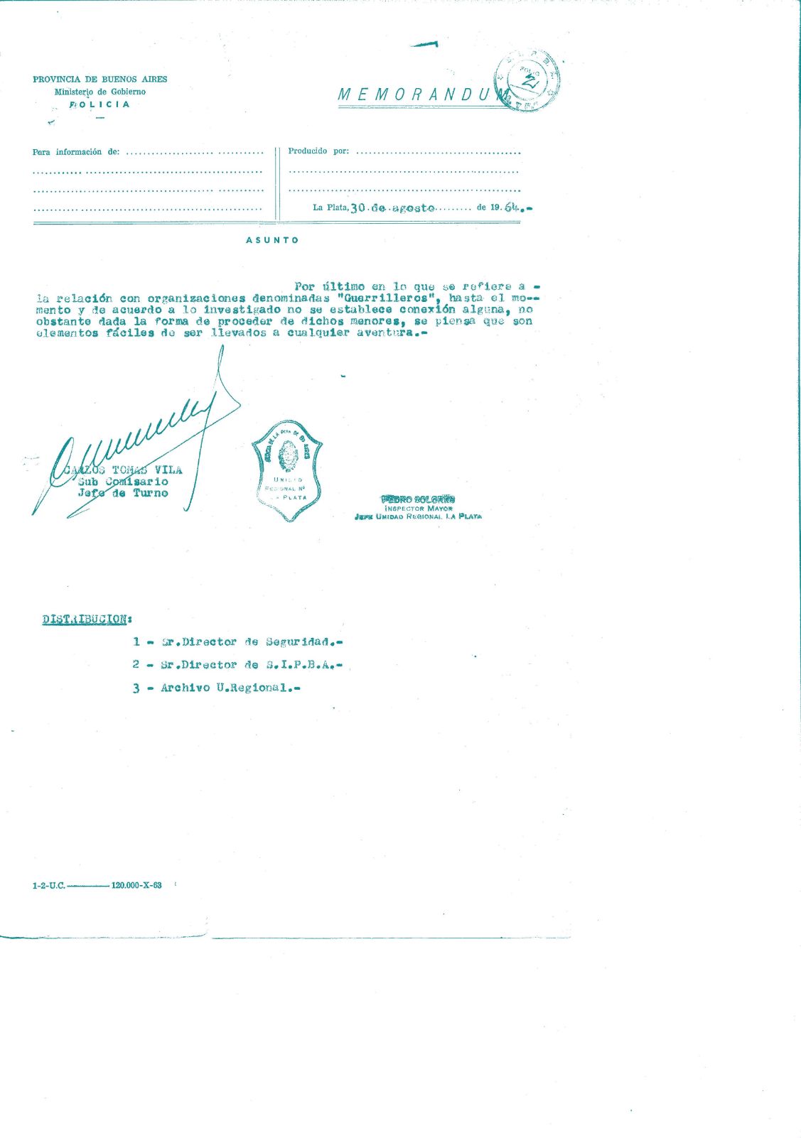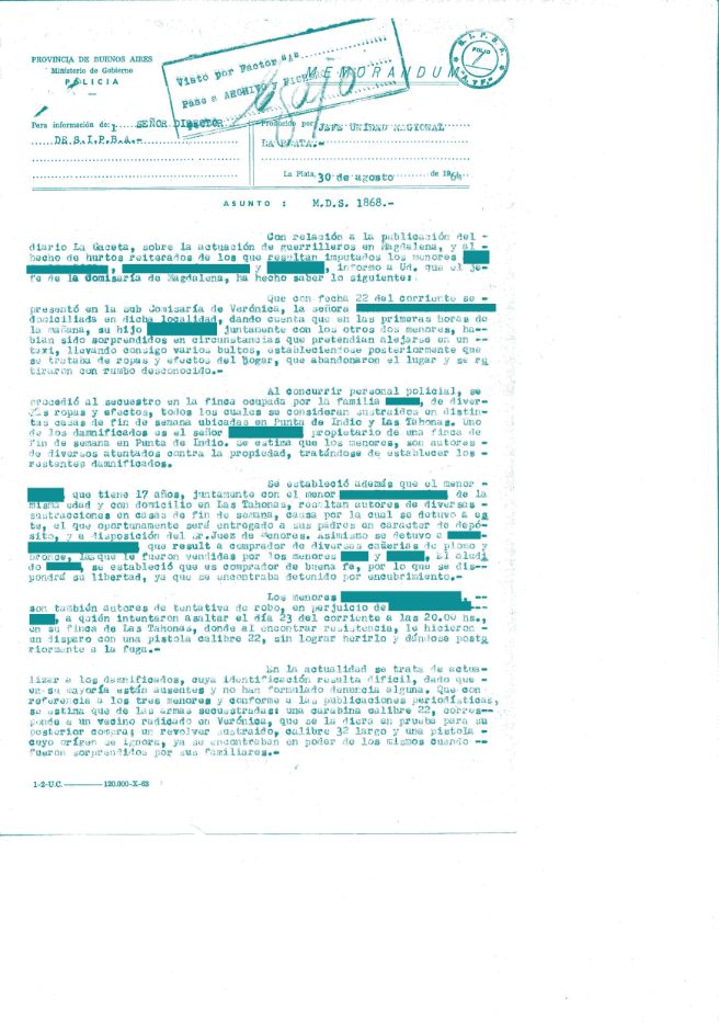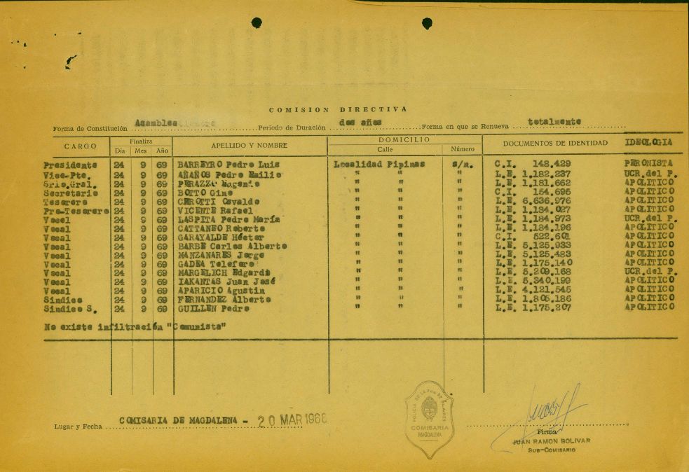 “El postulado parte de la base de saber quién es quién, es decir, tener registrado a los buenos para saber quiénes son cuando dejan de serlo”. Esta frase extraída de un legajo de la Mesa Doctrina, da una idea de la persecución, espionaje y registro de la DIPPBA sobre las actividades de las y los ciudadanos de la provincia de Buenos Aires a lo largo de casi 50 años. Solicitudes, memos, informes, fotografías, allanamientos, fueron parte de la burocracia de la inteligencia policial que también supo formar parte del engranaje del terrorismo de estado durante la última dictadura militar.
