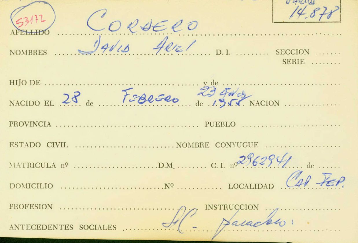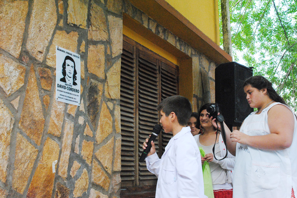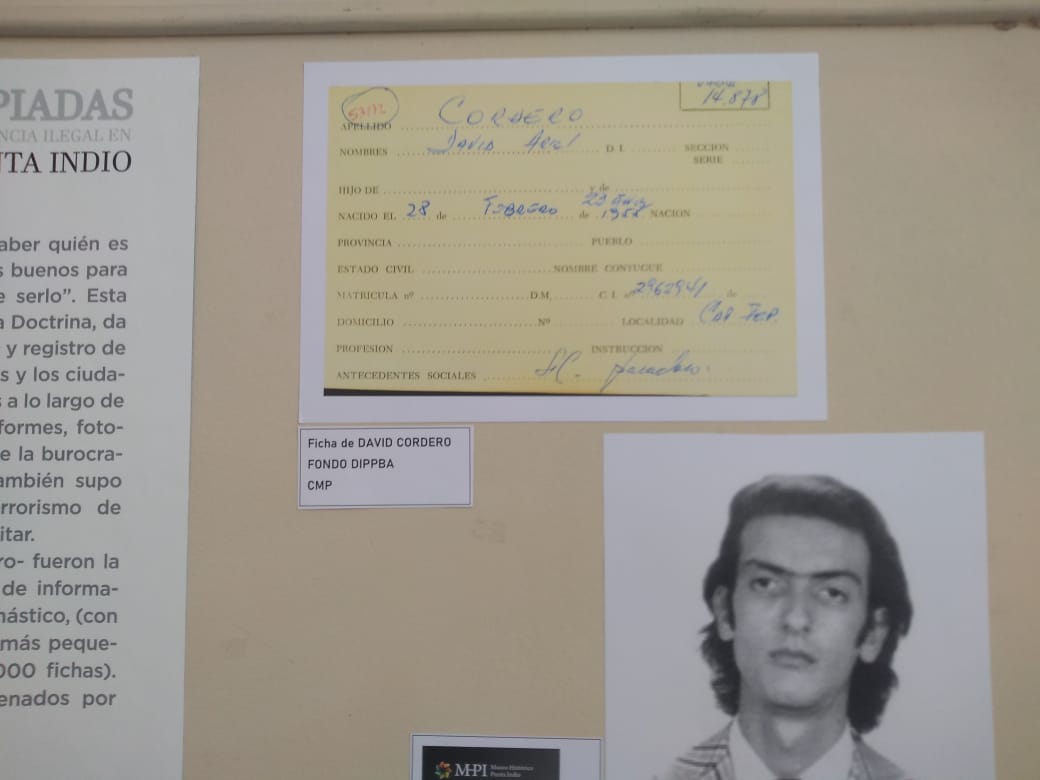David Ariel Cordero desapareció el 21 de abril de 1977 cuando tenía 23 años. Era el único hijo del suboficial de la Armada Asdrúbal Cordero y de María Vaz, quienes vivieron en su casa de calle 29 entre 32 y 34 durante la adolescencia de Deivi. Antes de que los represores lo chuparan y desaparecieran estudió Arquitectura en la UBA. Militaba en la JUP y en Montoneros. Su familia vivió en Verónica hasta que Deivi faltó; entonces se mudaron, nadie recuerda bien a dónde, y nada más se supo de ninguno de los tres. Hoy la casa donde pasó su adolescencia es un sitio de memoria y tiene puesta en la entrada una placa en su memoria.