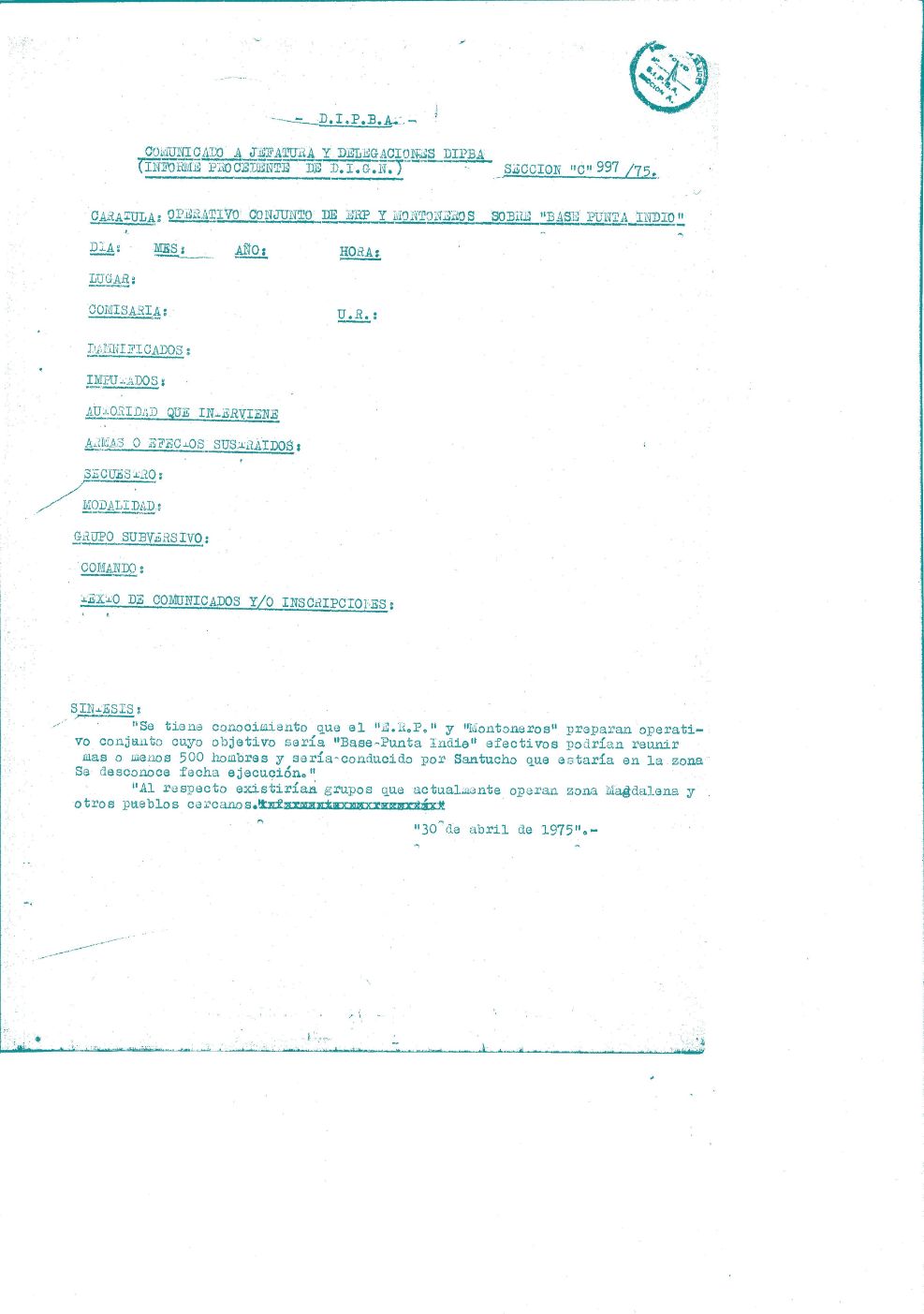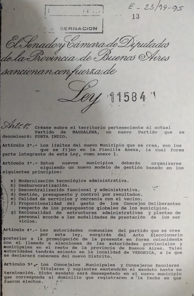Informe de inteligencia sobre la situación social y posibles movilizaciones vecinales por el nacimiento del partido de Punta Indio. CPM- Fondo DIPPBA – Div. Cen. AyF, Mesa A, Antecedentes comuna, Legajo 72, Tomo 1. Año 1994.