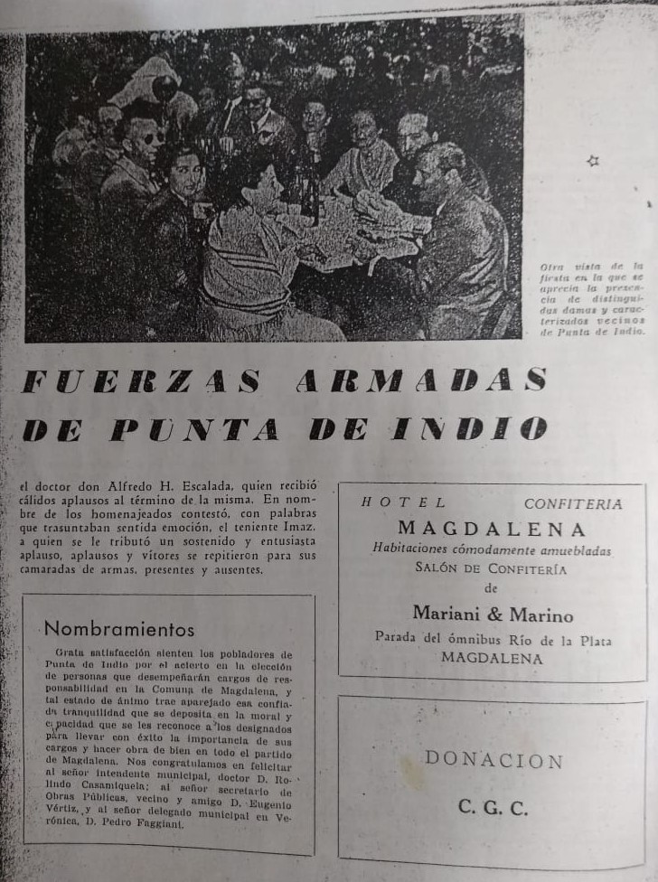 En este apartado se pueden ver algunos de los documentos generados en la comunidad y que forman parte del Centro de documentación y archivo (los documentos pertenecen al Museo Histórico de Punta Indio “Eduardo Barés”).