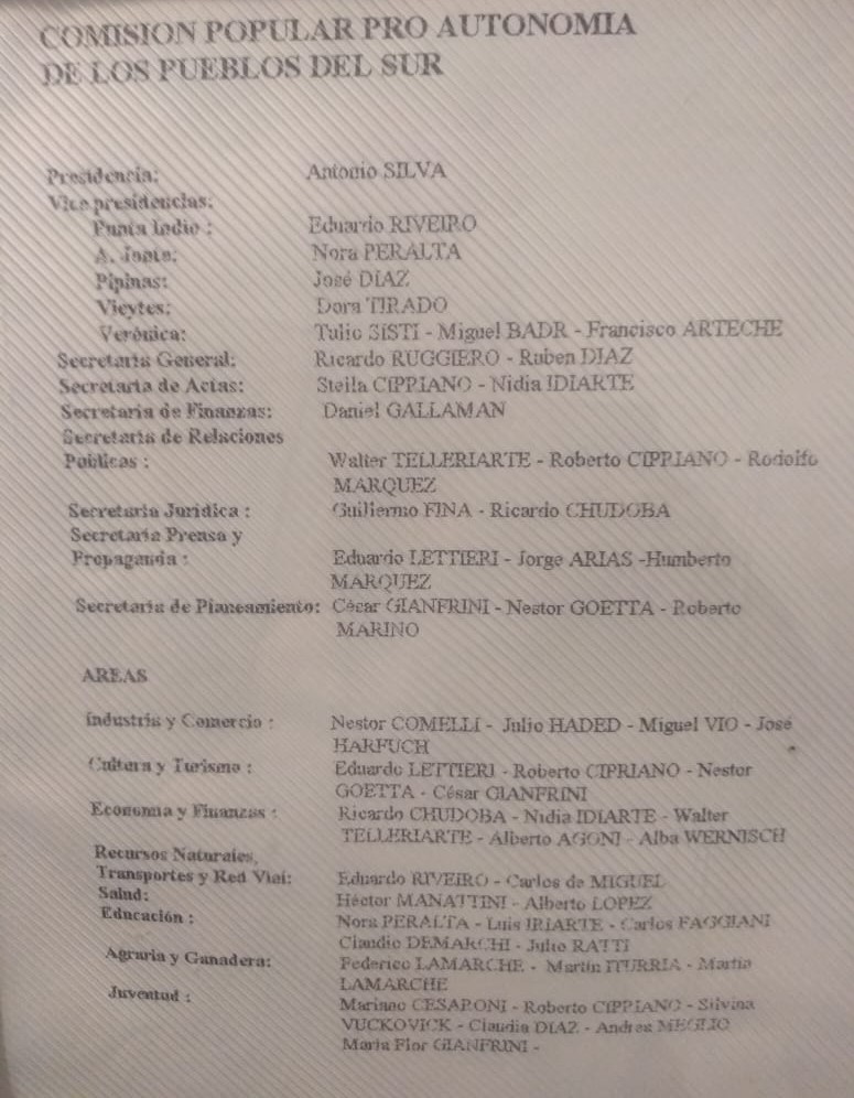 Volante de la Comisión Pro Autonomía de los Pueblos del Sur . CPM- Fondo DIPPBA – Div. Cen. AyF, Mesa A, Antecedentes comuna, Legajo 72, Tomo 1. Año 1994.