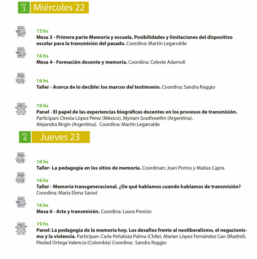 Durante dos días, las y los participantes del encuentro compartieron experiencias de trabajo, desafíos y límites: gestión institucional y cultural, pedagogía y transmisión de la memoria, educación en derechos humanos y el rol de las nuevas generaciones, intervención en las violencias del presente. Estas ideas y conceptos forman parte de ese recorrido.