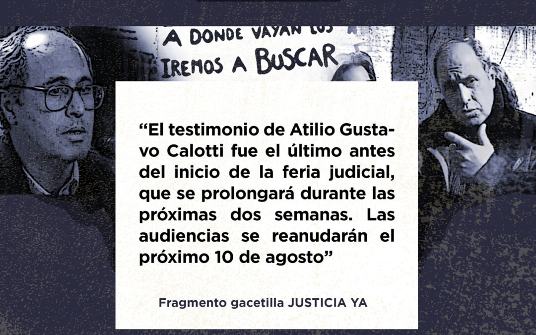 Se trata de Atilio Gustavo Calotti, detenido ilegalmente en 1976 cuando trabajaba en la Jefatura de la Policía provincial, a un pasillo de distancia de la Dirección de Investigaciones que comandaba el represor. Contó su paso por tres campos de concentración y por la Unidad 9 de La Plata, “que era una prolongación de los centros clandestinos”. Fue el último testigo antes del receso por la feria judicial: el juicio se reanudará el próximo 10 de agosto.