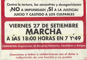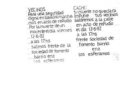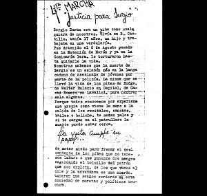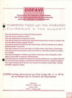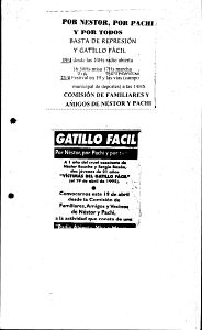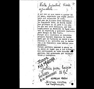 Aquí presentamos los avances del trabajo de investigación, una selección documentos que dan cuenta de la persecución a familiares y organizaciones sociales, y una serie de volantes que fueron recogidos por la DIPPBA en marchas y actos.