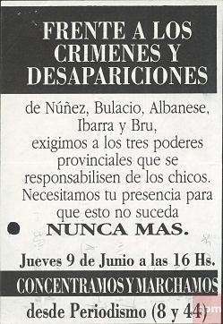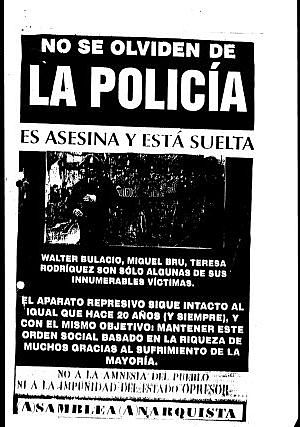 Finalizada la dictadura militar y durante los años 80 y 90 la Dirección de Inteligencia de la Policía de la provincia de Buenos Aires siguió desplegando su estructura de espionaje en las ciudades, pueblos y barrios. En ese período no sólo continuó el seguimiento a los gremios, organizaciones sociales, partidos políticos y los hechos considerados peligrosos sino también incorporó en su listado a las manifestaciones contra la violencia institucional, los casos de “gatillo fácil”. La persecución a los familiares y al entorno de las víctimas, la vigilancia en conferencias y el registro de manifestaciones por reclamos de justicia y las irregularidades del accionar de la misma, dan cuenta del mecanismo de espionaje e inteligencia sobre las víctimas y sobre quienes se animaron a denunciaban la responsabilidad de la policía en los crímenes.