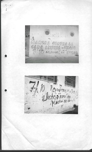 Como muestra del espionaje efectuado durante las protestas en las calles, aparecen también los afiches y volantes propios de las organizaciones. Escritos de puño y letra o tipeados a máquina o en computadora, según la época, los mismos son testimonio de la violencia ejercida por parte del Estado en ese período, y evidencian el espionaje que se ejerció sobre aquellas víctimas, sus familiares y las organizaciones que no cesaron en la lucha. Las palabras, las fechas, las imágenes, los reclamos, viven y nos hablan a través de estos documentos.