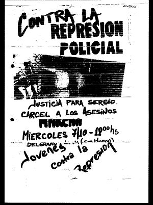 Con el advenimiento de la democracia en 1983, uno de los objetivos de la DIPPBA se centró en perseguir y registrar a las víctimas, los familiares y toda aquella organización que se relacionara con los reclamos de justicia por los casos de violencia institucional, evidenciada en las muertes cometidas por las fuerzas de seguridad del Estado. El uso letal de la fuerza por parte de la policía hacia los jóvenes más desprotegidos comenzaba a convertirse en un “gatillo fácil”; las detenciones arbitrarias, las golpizas, las torturas, prevalecían dando cuenta de que, en democracia, se seguían sucediendo las prácticas de la dictadura.