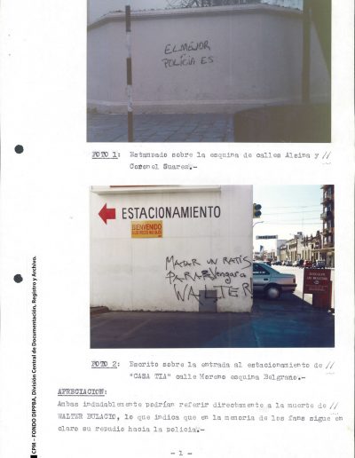 Desde entonces, cada legajo que nombraba el caso de Walter Bulacio se confeccionaba a partir de una inteligencia detallada, en donde la DIPPBA tomaba registro de lo que se decía, lo que se cantaba, las frases que se escribían en las banderas que llevaban quienes asistían: organismos de derechos humanos, partidos políticos, agrupaciones estudiantiles.