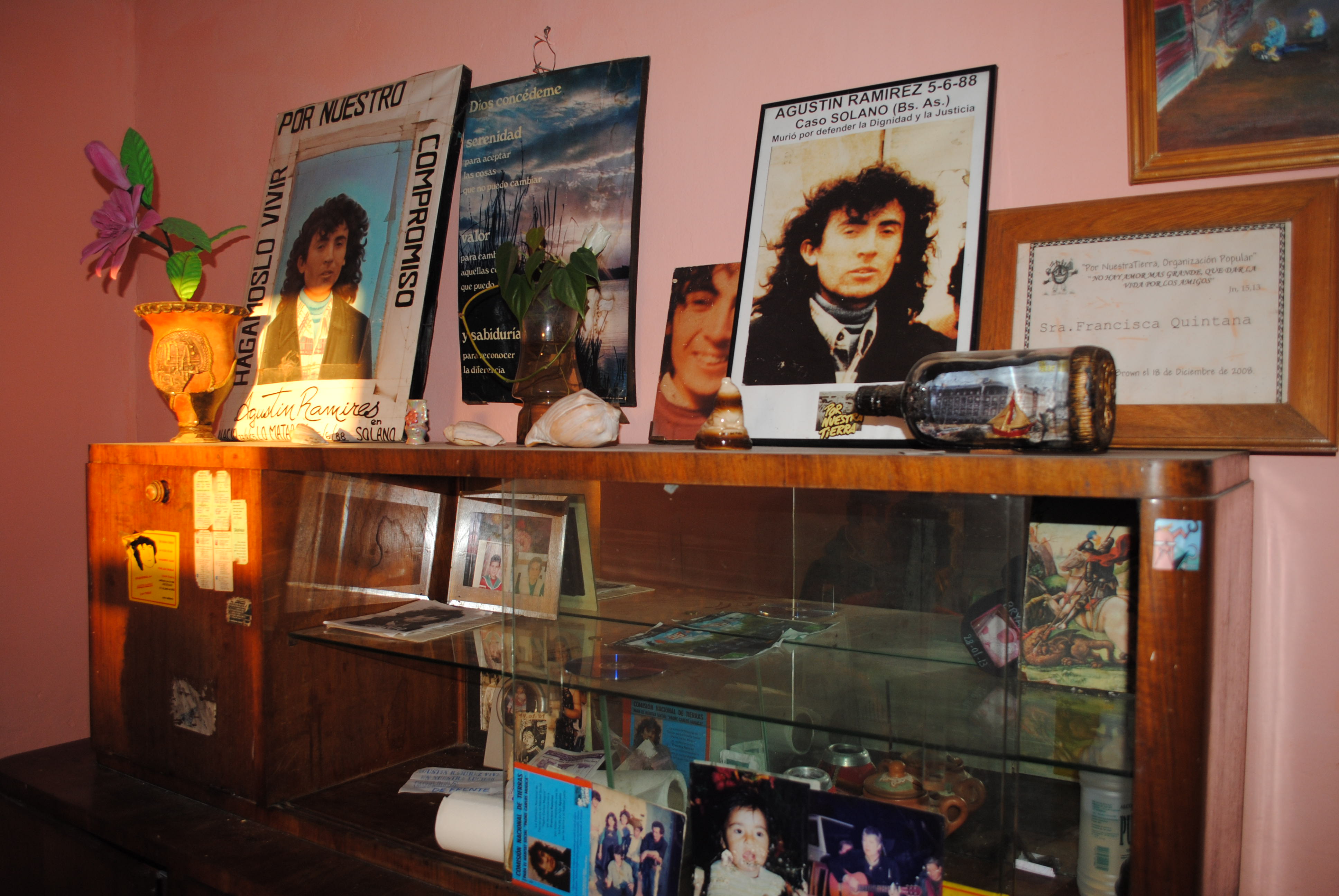 El 5 de junio de 1988 Agustín y Javier Sotelo, un joven vecino del barrio, fueron asesinados cerca de donde vivían. Horas antes, Agustín había salido a buscar postes para marcar uno de los asentamientos en los que militaba, Tierras de Jerusalén. Según narraron los testigos, un grupo de hombres se lo llevó y lo golpeó. Su mamá, Francisca, dijo que cuando fue a reconocerlo a la morgue pudo ver en su cuerpo las marcas de la tortura.