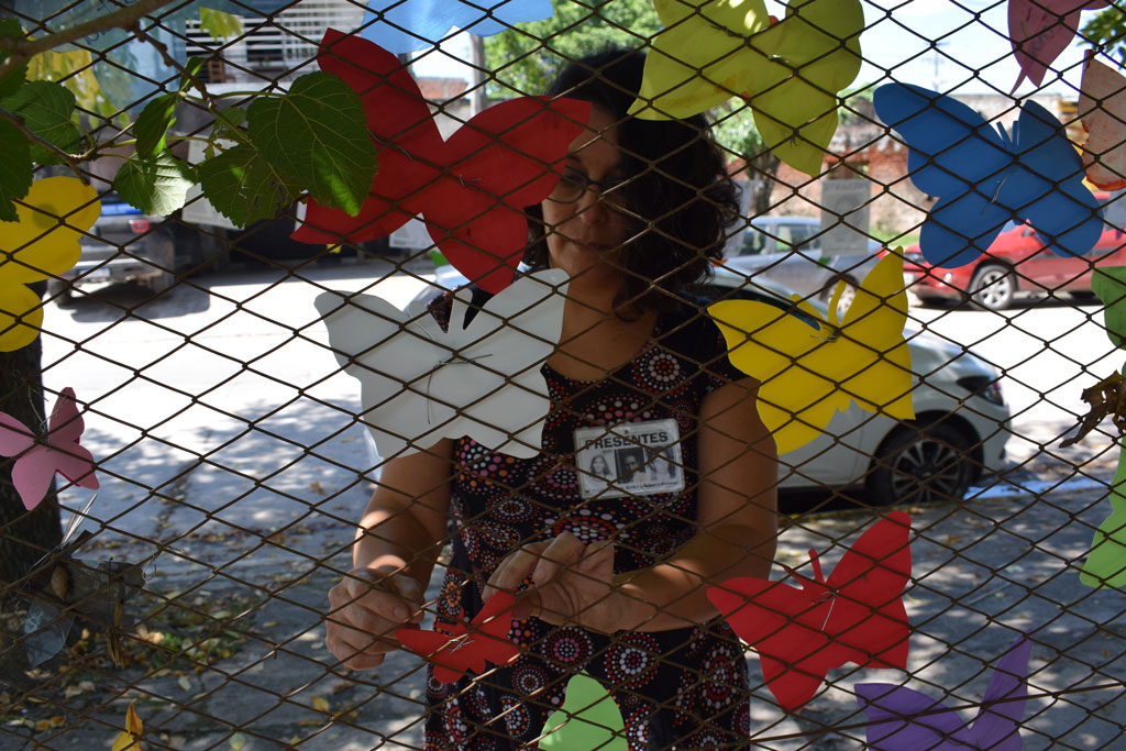 Intervención con mariposas en el espacio para la memoria y promoción de los DDHH ex CCD Escuelita de Famaillá.