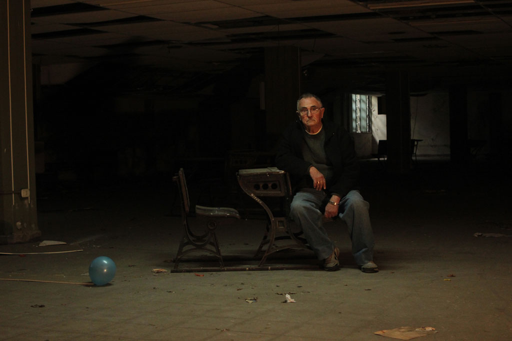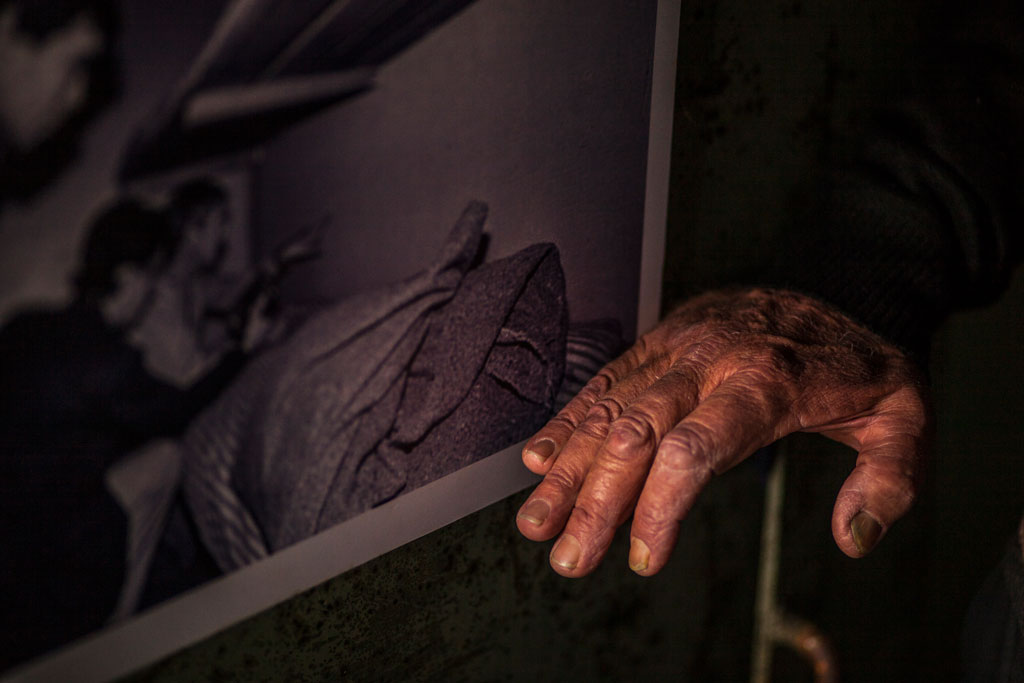 Retrato de la mano de Rubén Shell, sobreviviente del centro clandestino de detención Pozo de Quilmes. Junto a él se ve detalle de la fotografía del archivo de la CONADEP, tomada por Enrique Shor, donde en 1984 Rubén reconoce el lugar en el que estuvo detenido.