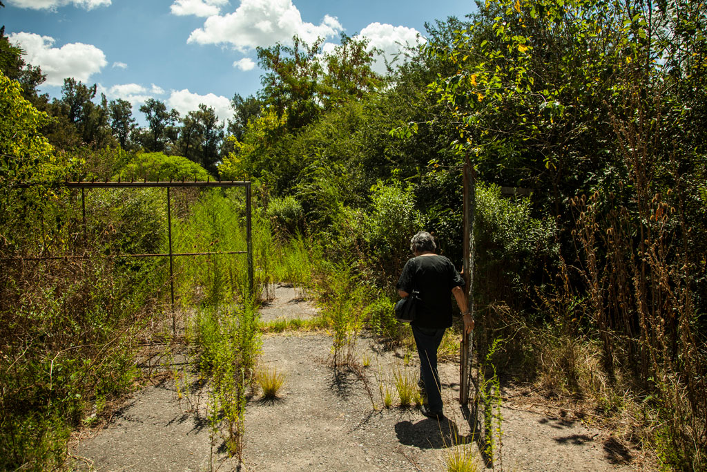 Retrato a Iris Pereyra, sobreviviente, entrando al Campito del ex CCD de Campo de Mayo.