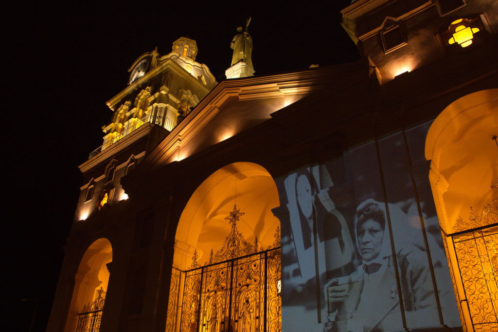 Actividad La Tenacidad de los Pañuelos, proyección de fotografías de familiares de desaparecidos de Córdoba en la Plaza San Martín.