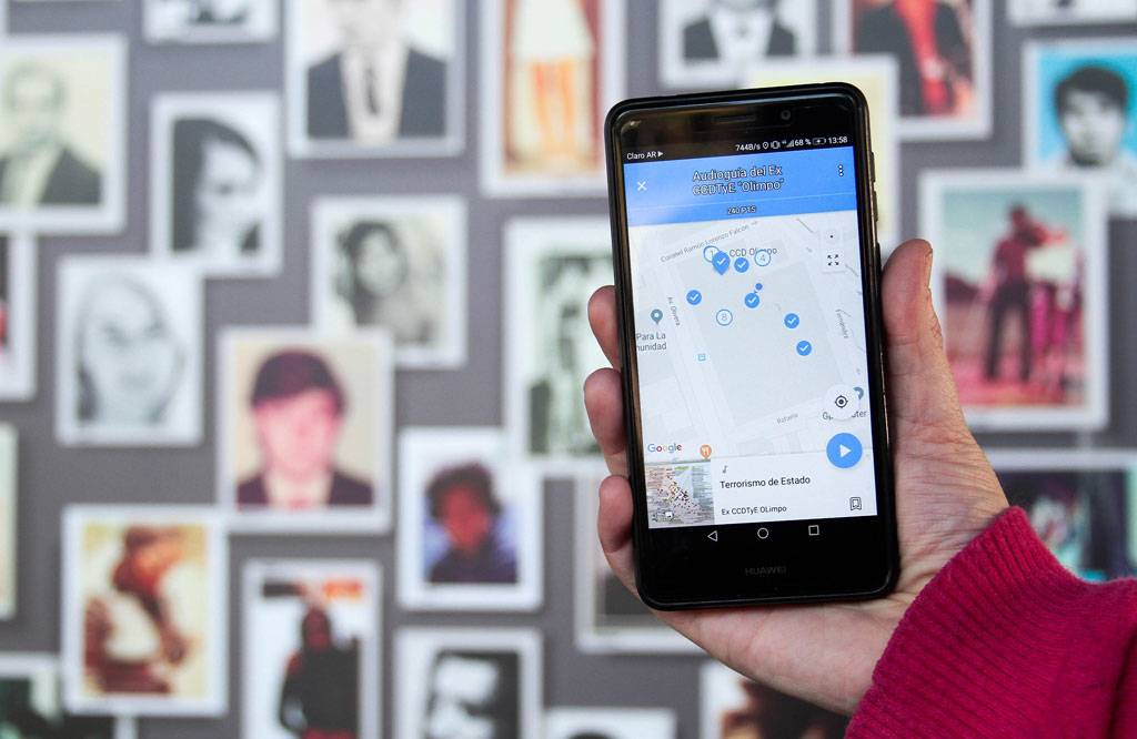 Actividad registrada: Difusión de audio guía que permite, por medio de una aplicación y un teléfono celular, recorrer el parque a través de estaciones en las que se brinda información sobre el espacio para la memoria y la promoción de los DDHH ex CCDTyE Olimpo.