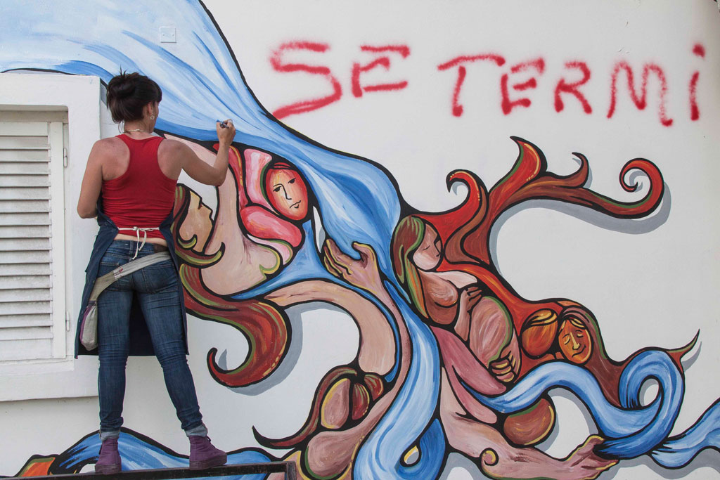 Pintada realizada en la Casa de la Memoria y la Vida, ubicada a metros de donde funcionó el ex centro clandestino de detención Mansión Seré. Manos anónimas entraron unos días después de la elecciones del 2015 y escribieron “el 22 se termina el curro”. Esa pintada fue transformada en una obra de arte por artistas locales con la consigna «la lucha no se termina».
