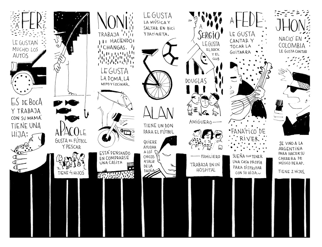 Noni (Noni Cabrera) tenía 23 años al momento de la masacre. Le gustaba andar en moto, domar caballos y cocinar. Trabajaba haciendo changas y quería comprarse una casa. Fer (Fernando Latorre) era de boca y trabajaba con su mamá. Le gustaban mucho los autos. Tenía una hija. Alan (Alán Córdoba) tenía un don para el fútbol. Le gustaba la bici y saltar en patineta. Quería ayudar a los chicos a salir de la droga.
