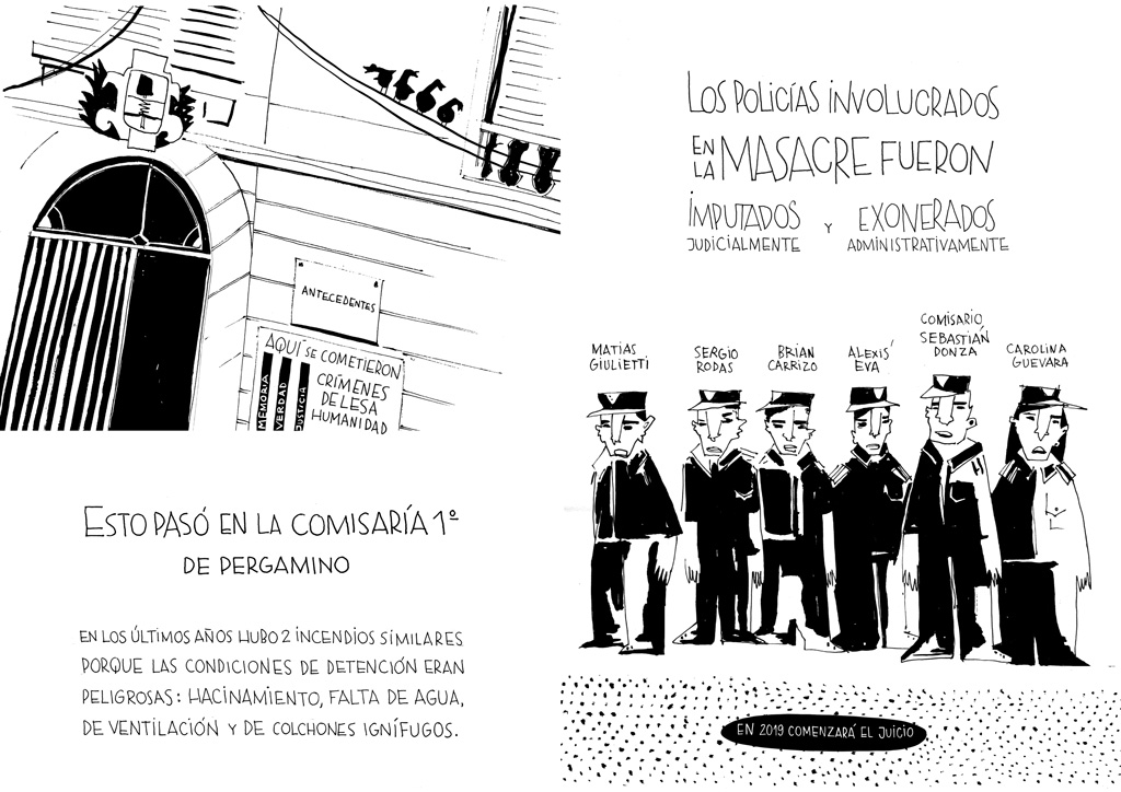 En el marco del primer aniversario de la masacre de Pergamino la CPM produjo una historieta que reconstruye las historias de los siete jóvenes asesinados y los acontecimientos del 2 de marzo de 2017 en la Comisaría 1º.