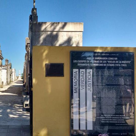 Entre 1978 y 1979, 33 cuerpos devueltos por el mar Argentino fueron enterrados como NN en el cementerio de General Lavalle. 19 de esos cuerpos ya han sido identificados por el Equipo Argentino de Antropología Forense, entre ellos se encuentran Azucena Villaflor y Leonnie Duquet.