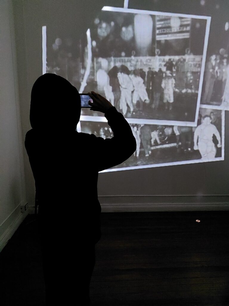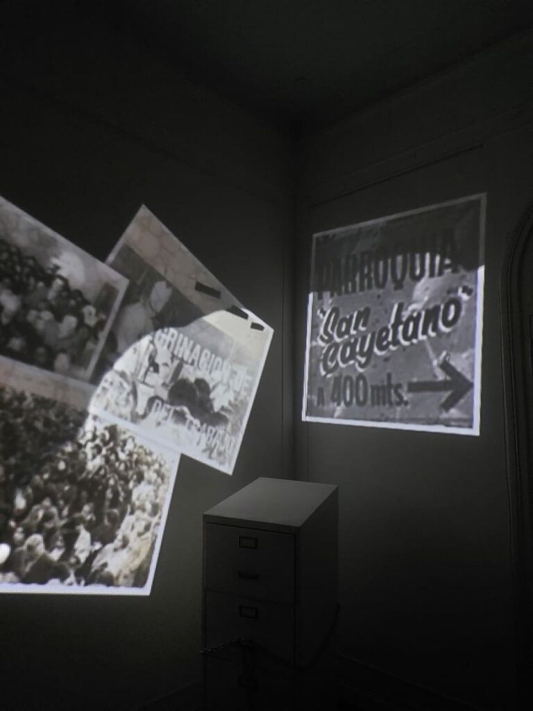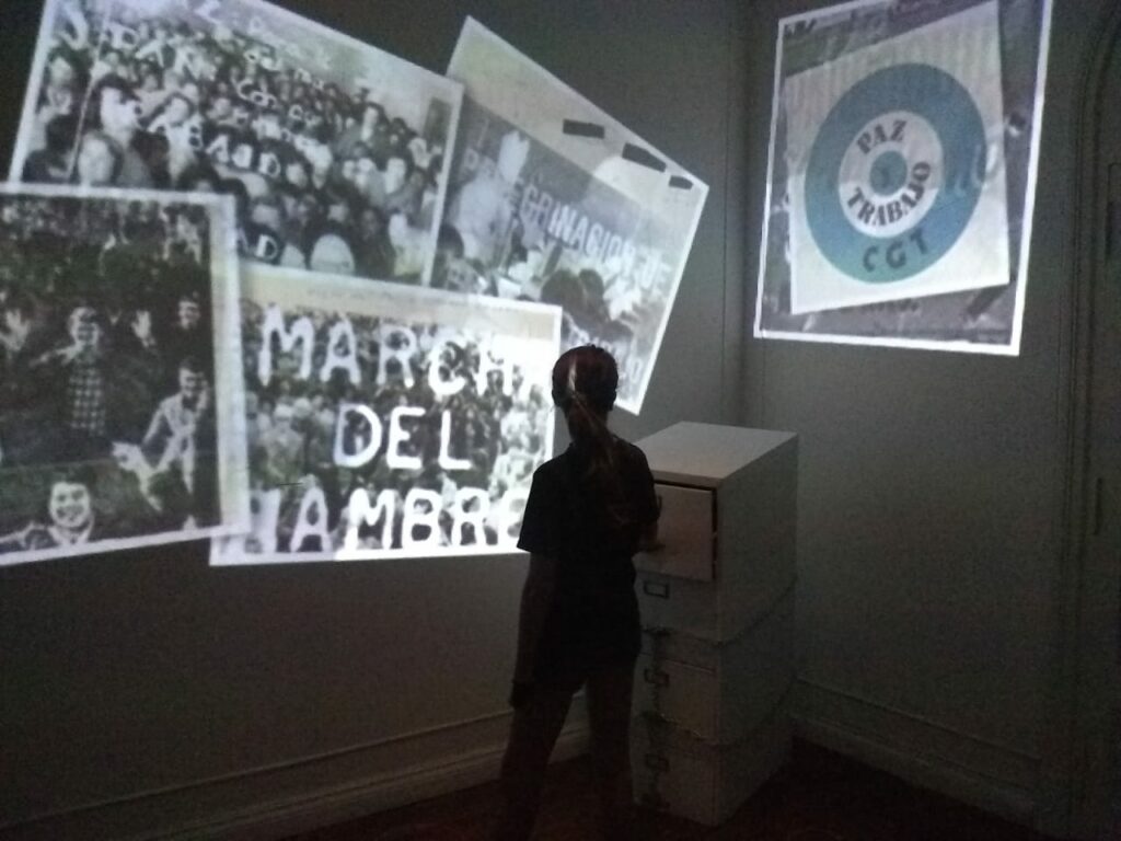 Se trata de un fichero que, mediante la técnica de videomapping, despliega sobre las paredes de la sala distintas fotografías, afiches, recortes de prensa, volantes y otras imágenes que se encuentran en el archivo de la DIPPBA, que gestiona y preserva la CPM.