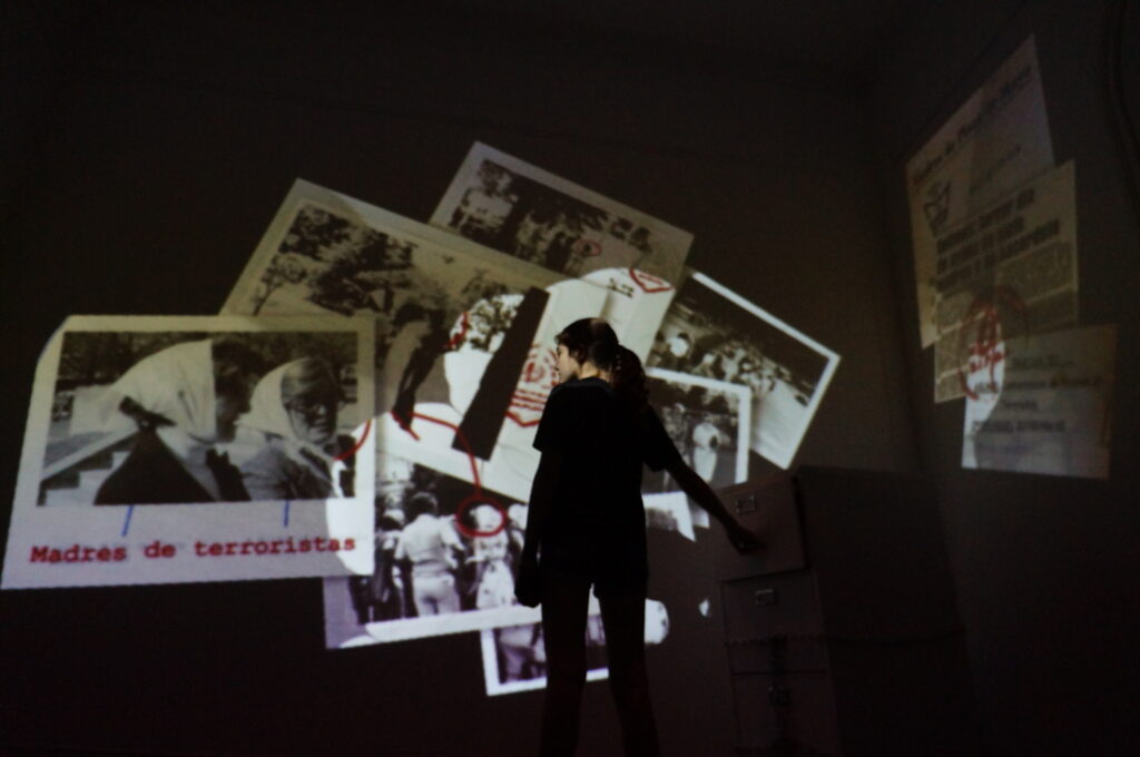 Al abrir el primer cajón del fichero, que es parte del dispositivo, se proyectan imágenes donde se puede ver el accionar de la DIPPBA en diferentes momentos, y que da cuenta del despliegue y accionar de seguimiento llevado adelante