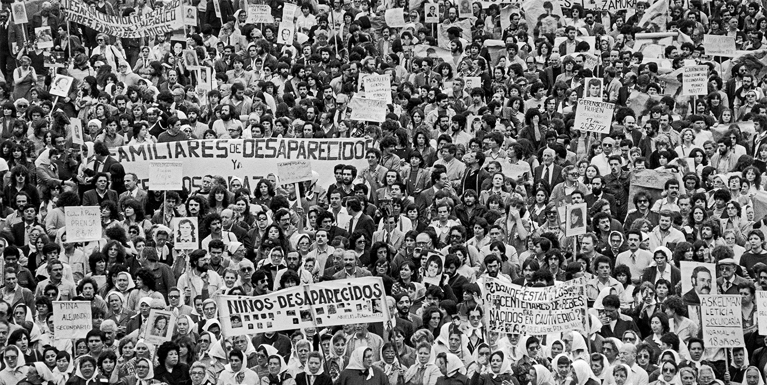 The consensus enforced by the military in the first years of government began to fall apart thanks to the resistance. The organization of the mothers and relatives of the detained disappeared, the workers’ organizations that reconfigured themselves in the struggle, the alternative graphic media, and the exiles who sought international alliances to publicize the crimes that occurred were together undermining the basis for state terrorism. The Mothers of Plaza de Mayo were the founders of the organized civil resistance against the dictatorship. On April 30, 1977, they gathered for the first time to ask for their children and thus broke the wall of silence that the dictatorship had built. That fight spread to the rest of the human rights organizations. Partial strikes, uncompleted work, and interruption of tasks prevented the identification of union delegates. Dissemination of craft writings that circulated hand-to-hand was another strategy of resistance to break the silence and impunity. On March 30, 1982, a massive march was held in Buenos Aires under the slogan «peace, bread and work», where thousands of people participated. The defeat in the Falklands War in 1982 was the final straw that angered Argentines and precipitated the end of the dictatorship. The ex-combatants, silenced upon their return from the islands, suffered silently. Today they demand the right to be recognized as victims of crimes against humanity.