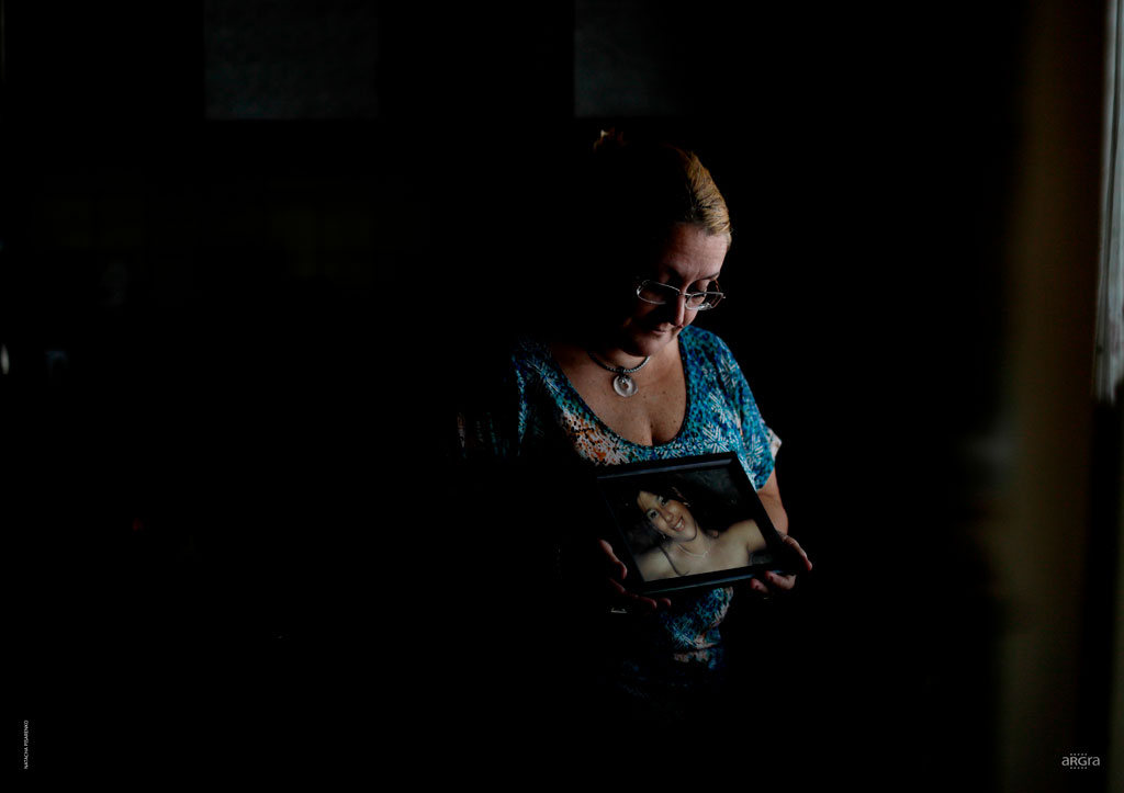 Marcela Morera tiene una foto de su difunta hija Julieta Mena en Buenos Aires, Argentina. Julieta fue golpeada hasta la muerte por su novio el 11 de octubre de 2015 cuando tenía dos meses de embarazo y 22 años. Fue sentenciado a cadena perpetua. «Nadie me devolverá a mi hija ni a su bebé», dijo Morera, quien ahora trabaja para ayudar a las víctimas de la violencia de género.