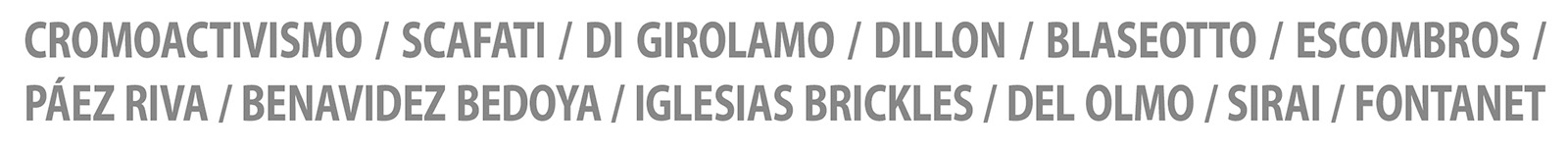 Cromoactivismo: desde el año 2013 viene trabajando junto a otros colectivos, agrupaciones y escuelas en cromoactivaciones de acción directa que promueven encuentros de cartelismo y pintura para intervenir en distintos contextos. Cromoactivismo estuvo conformado hasta el 2024 por Marina De Caro, Mariela Scafati, Vic Musotto, Daiana Rose y Guille Mongan. Actualmente participan Marina De Caro, Vic Musotto, Daiana Rose y Guille Mongan.