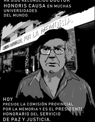 Hoy preside la Comisión Provincial por la Memoria, es presidente honorario del Servicio de Paz y Justicia y titular de la cátedra de Derechos Humanos de la Facultad de Ciencias Sociales de la UBA.