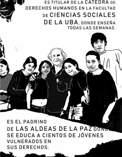 Porque Adolfo no sólo ha denunciado las injusticias sino que ha trabajado para hacer más justo este mundo. Aún hoy sigue sembrando: recorre cárceles y centros de jóvenes, acompaña a los pueblos originarios, defiende la madre tierra, abraza a las niñeces en las Aldeas de la Paz, sostiene la memoria de los ausentes y sigue reclamando justicia.