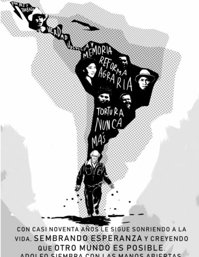 Celebramos el reconocimiento a su figura como símbolo de un todo un colectivo. Adolfo en nombre de los pueblos de América encarnó un largo e intenso camino acompañando las viejas y nuevas luchas de un continente asolado por la desigualdad. Un territorio que caminó sembrando solidaridad, esperanza e ideas para hacer de este mundo otro mundo.