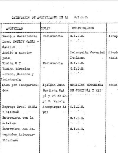 Este legajo informa el mismo 6 de septiembre de 1979 sobre un viaje de familiares de detenidos desaparecidos desde la provincia de Chaco con el objetivo de reunirse con la CIDH, con información relacionada a la situación de los detenidos encarcelados.