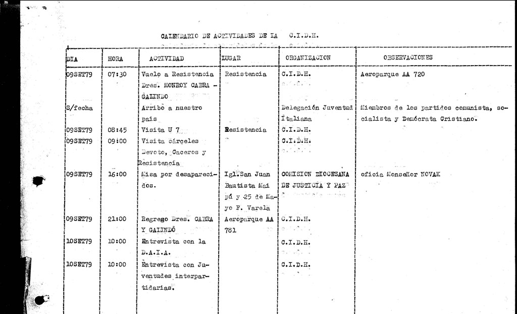 Si bien la visita de la Comisión Interamericana de Derechos Humanos (CIDH) se había pautado con el gobierno argentino para mayo de 1979, una reestructuración y cambio de autoridades postergó el plan original para septiembre de ese año.