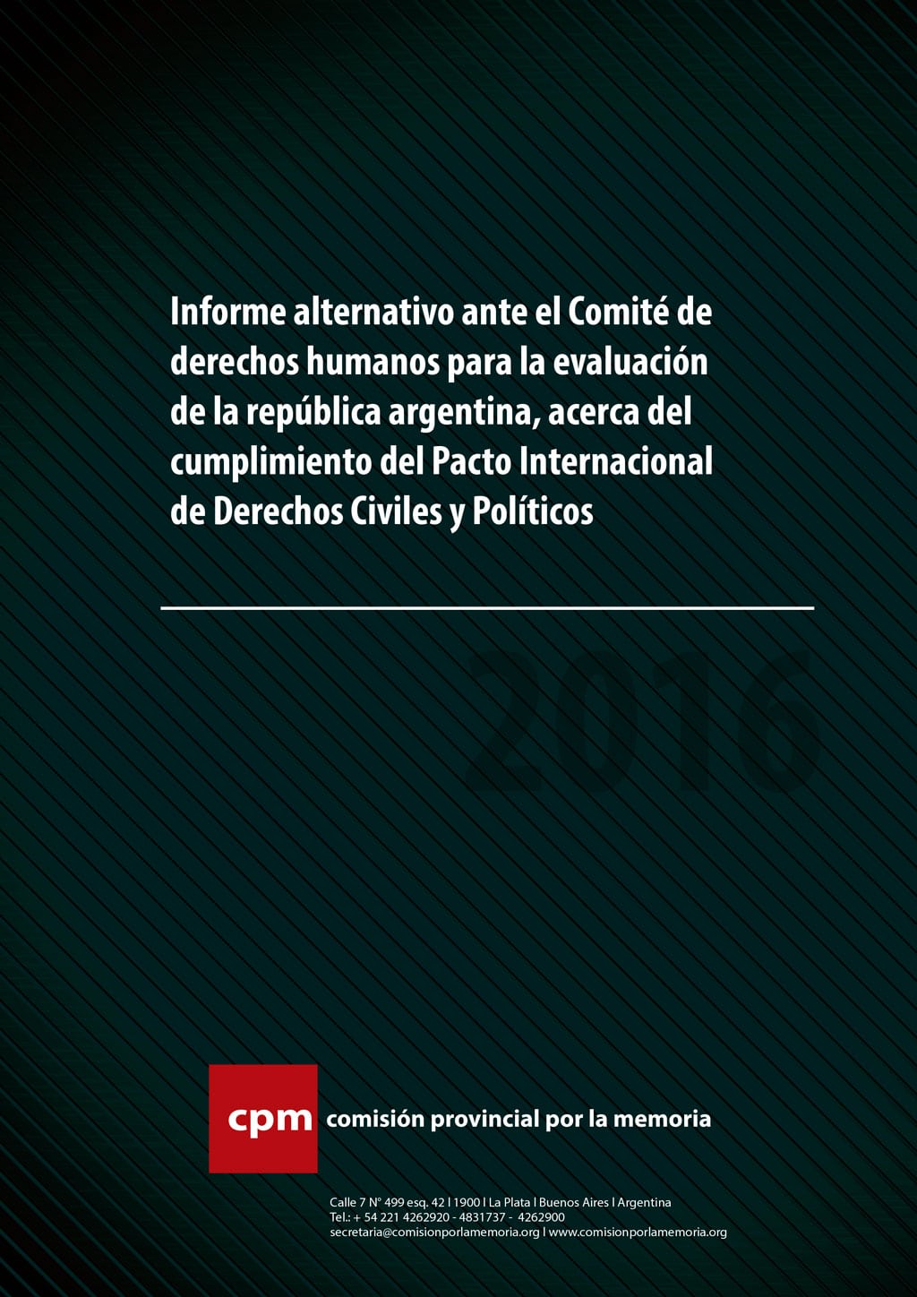 La Comisión por la Memoria de la Provincia de Buenos Aires (CPM) saluda al Comité de Derechos Humanos y presenta este informe para su consideración en oportunidad de estas sesiones, momento en el que se analizará el informe presentado por el Estado argentino. Este trabajo contiene información sobre la situación de los derechos civiles y políticos en nuestra provincia.